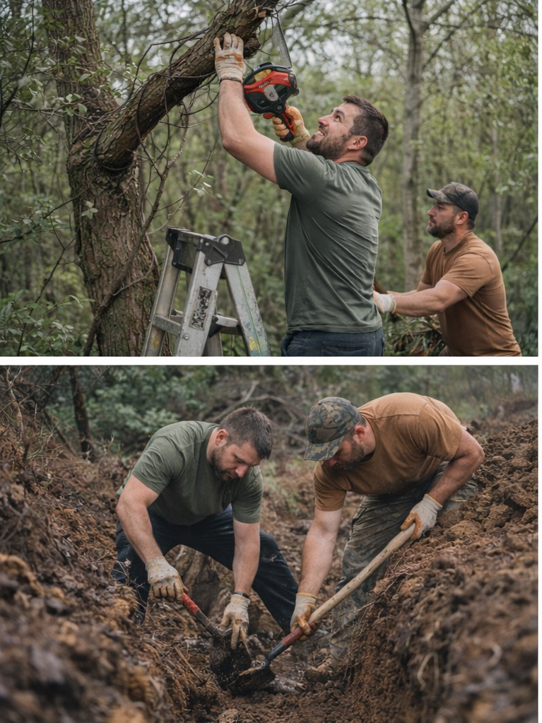Removal of brush, small trees, debris, and overgrowth to prepare property for construction, access, or cleanup after storms.