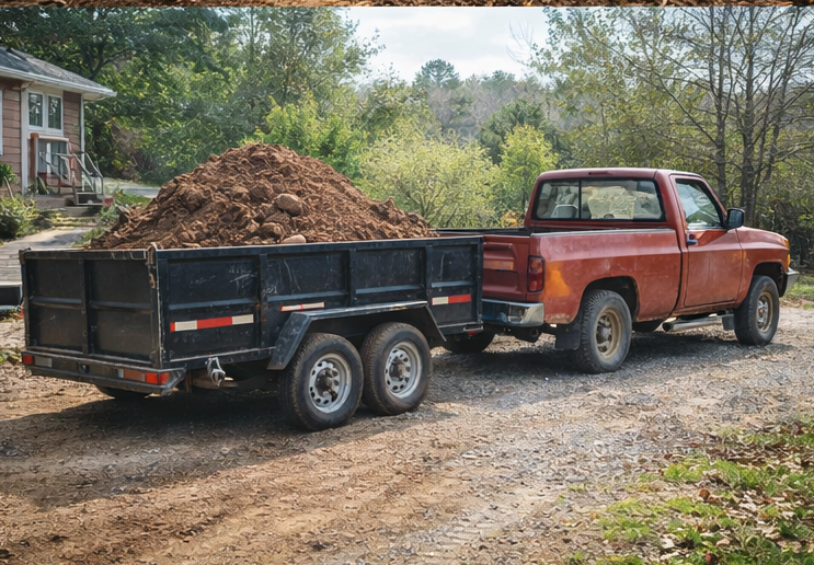 Material hauling services including dirt, brush, debris, and job-site materials using partner owned hauling equipment. Ideal for cleanup, site prep, and post-excavation removal.