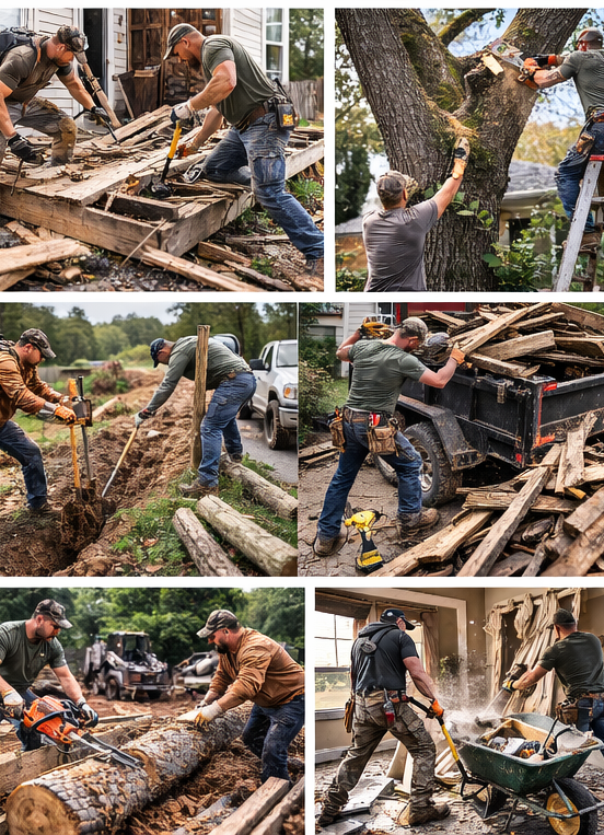 Seasonal and post-project cleanup services including leaf removal, debris clearing, and property cleanouts to restore safe and usable land.